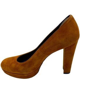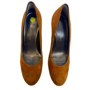 Stuart Weitzman Cognac Brown Suede Block Heel Platform Pumps
