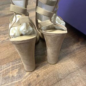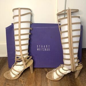 Pre-owned In Great Condition Stuart Weitzman Caged-up Gladiator Sandal Heels In The Color Suede Cashew ! I Only Tried These Shoes On In The House, Never Wore These Outside The Bottom Of The Shoe Is Real Leather So That’s Why They Look Like That ! If You Have Any Questions Lmk!