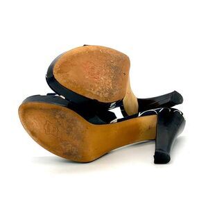 In excellent condition with only minor signs of wear. No damage. Platform measures 1 inch. Heel measure 4 1/4 inches.