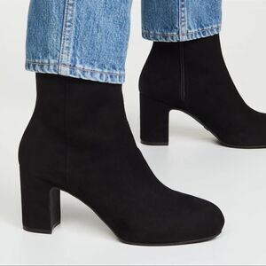 Comes with box, No lid. Size 9.5/ EU 40. A wrapped demi-block heel elevates a streamlined suede bootie featuring minimal styling for maximum versatility across your wardrobe.