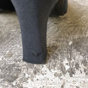 These are the black fabric shoes with glitter toes. Please look at the pictures as you see there is a Nick in the base of one of the heels otherwise the shoes are in great condition. Heel height is 3 inches