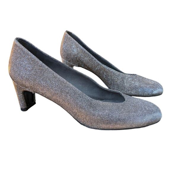 Stuart Weitzman Silver Glitter Accent Pumps Size 7
