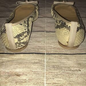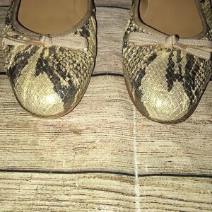 Great, preloved condition. Stuart Weitzman Metallic Snakeskin Ballet Flats. Gold metallic shades. Minimal signs of wear on the uppers. Slight wear to the outer soles. Size 6 M.