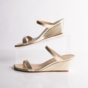 Stuart Weitzman Womens Aleena 50 Wedge Sandals Gold EU 37 US 6.5 Metallic Slip On