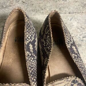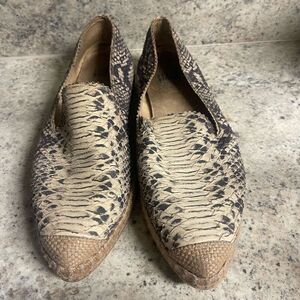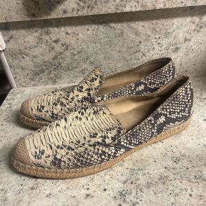 Stuart Weitzman Catalan snakeskin print espadrille flats. Size 9.5. Minor wear throughout please see photos.