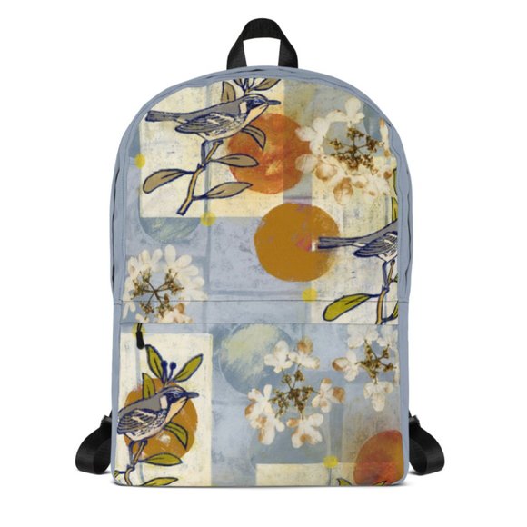 This medium-sized backpack has plenty of room with a big inner pocket, a separate section for a 15'' laptop, a front pocket, and a hidden pocket at the back for valuables. The bag is made of water-resistant material, so your all-over print designs will stay crisp and fresh no matter the weather!