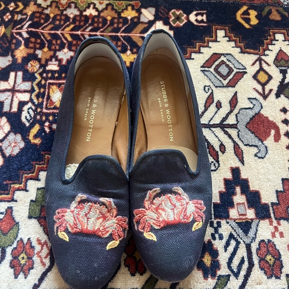 Stubbs & Wootton Embroidered Crab Shoes, size 10, wear to sole, and toe box.