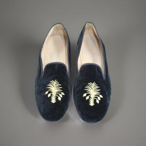 Stubbs & Wootton Palm Beach Velvet Graphic Print Palm Tree Loafers Sz 10 Women’s