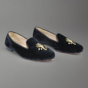 $595 Stubbs & Wootton Palm Beach Velvet Graphic Print Palm Tree Loafers Coconut driving shoe slip on black hand made in Spain, Size 10 Women’s Excellent gently worn condition, cleaned and ready to wear. Fast professional shipping. 9/29/2025