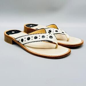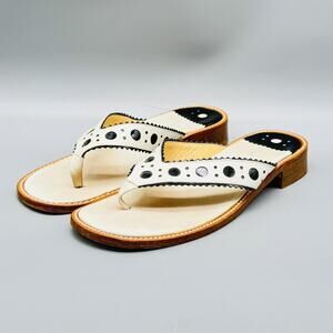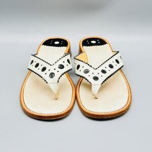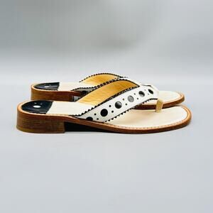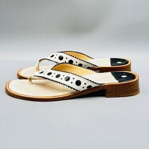 Stubbs & Wootton Sandals Womens 7 White Black Leather Thong Flip Flops Slip On