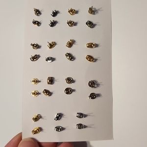 Various shapes, sizes and colors. Some have mismatched backs as far as color tone - gold/silver. Metal types unknown. All cute and tiny, perfect for any Minimalist or someone who just wants a touch of elegance.