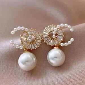 Lovely faux pearl and zirconia earrings. 🤍🩷