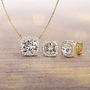 Stud Halo Cushion Shaped Earrings for Women and 18 Inch Necklace for Women Jewel