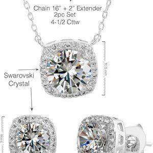 Halo Earrings and Necklace Set: The women's crystal halo Duo set give you an elegant flair with a graceful and timeless style, and make a chic addition to your jewelry box; Halo stud earring and necklace set complete any look; A modern take on a classic style, jewelry that pairs with everything; Perfect earrings for formal occasions or casual, everyday wear