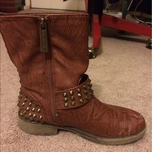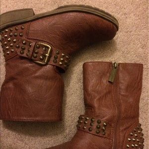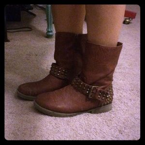 These cropped boots are studded on the left, right, and back portions. A zipper is on the inside of each boot. Listed as a size 7 but fit me perfectly, I wear a size 8.