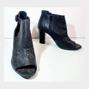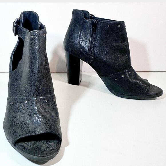 Vera Wang Simply Vera Faux Leather Peep-Toe Studded Cutout Booties Size 9 Goth Boho Moto Style