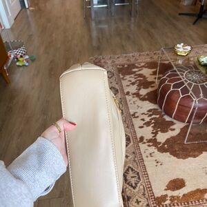 Chic and stylish studded beige handbag perfect for any occasion. Measures 12 x 6.5 x 3