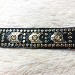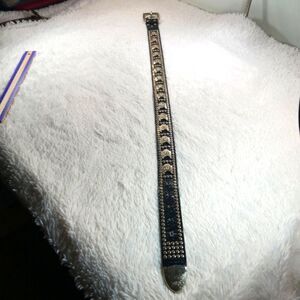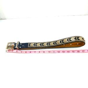 Studded Black Leather Belt with Silver Buckle Moto Bikercore Grunge S/M........