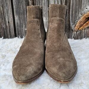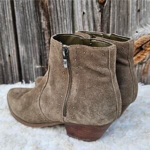Marc Fisher Wanida Studded Ankle Bootie Size 10 Tan Suede Leather Zip Boot Brown