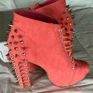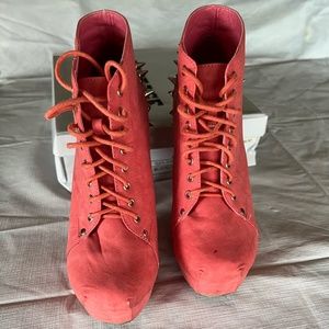 Salmon Colored Studded Booties Sz 8. Spike Stud Details. Lace Up Closure.