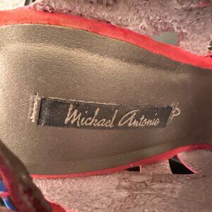 Studded Coral & Black Platform Sandals – Size 8.5