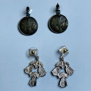 Studded Dangle Chandelier Earrings Black Modernist Boho Grunge Party 2 Pairs