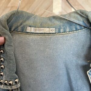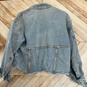 • FEATURES: studded throughout jacket. Black and white “LOVE” patch is sewn on. Has cute fraying on the bottom. Oversized look. Purchased from a CA boutique.