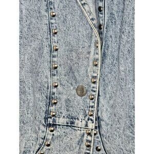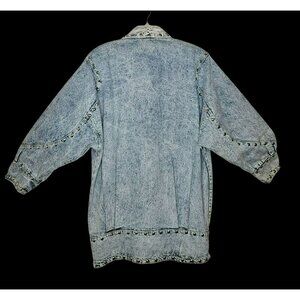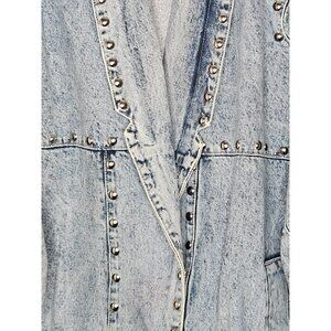 Studded Denim Oversized Jacket 80s VTG Eunina Acid Wash Lrg Biker Rocker Western