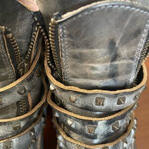 Freebird distressed gray leather boots with studded straps. Perfect for a bold look.