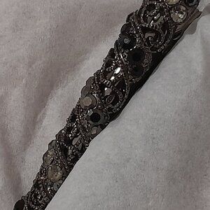 This 3" silver duck bill/alligator hair clip is studded with black and white sparkly crystals. Adds elegant style to any updo. Hair bling with a classic vintage vibe. In good condition with no missing ctystals.