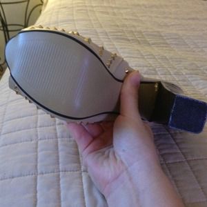 Studded Gold and Tan peep-toe heels