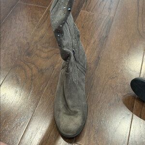 Step out in style with these chic studded gray suede boots. Perfect for adding a touch of elegance to any outfit.