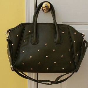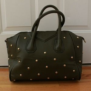 Medium sized green studded handbag. Gold hardware. Has a little wear and tear, but nothing too bad.