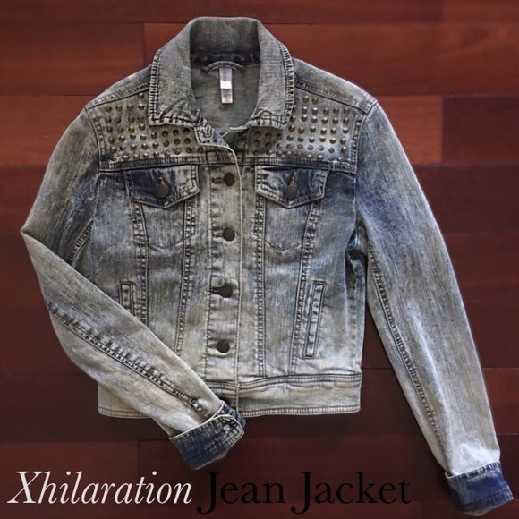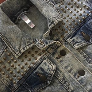 Acid Wash Brass Studded Jean Jacket! Great condition! Extra Small