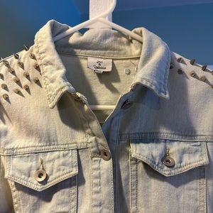 Barely used. Studded on shoulders. Light denim jean jacket. Good quality
