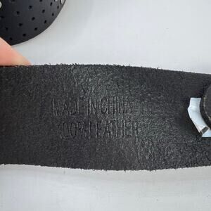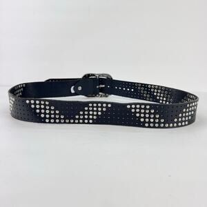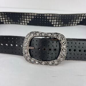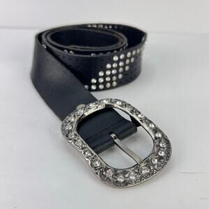 Studded Leather Belt Bling Rhinestone Buckle Black Distressed Women's Belt M