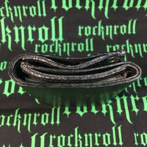 Selling a used Studded Men's Leather Wallet in good condition it was lightly used some scuff marks here and there but over all in good condition. Made of Genuine Leather and leather is still stiff. wallet has a pouch for your bills,has 6 pouches for credit cards and 2 other pouches. wallet closed is 4" x 2 3/4" open is 8.5" x 4" also has a whole so you can attach a chain to it if you like.