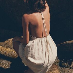 V-Neck Mini Dress With Braided Straps. Studded Detail.