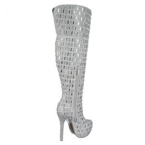 Dazzle about town in these Sexy-02 knee high, platform boots. The studs and jewels embedded into the shaft of the boot gives the it a standout, divalious look. Pair these with a silver or white mini skirt and leggings with a matching sequin top for a dressy look or pair it with dark blue denim jeans and a sequin top for a more casual, dressy look.