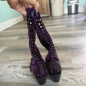 Step out in style with these stunning studded purple velvet boots. Perfect for adding a bold touch to any outfit.