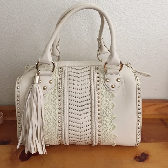 Cream studded purse with tassel, gold studs & lace detail. Perfect condition. Used once