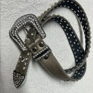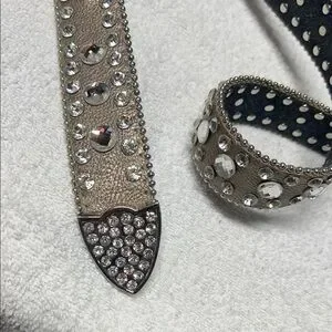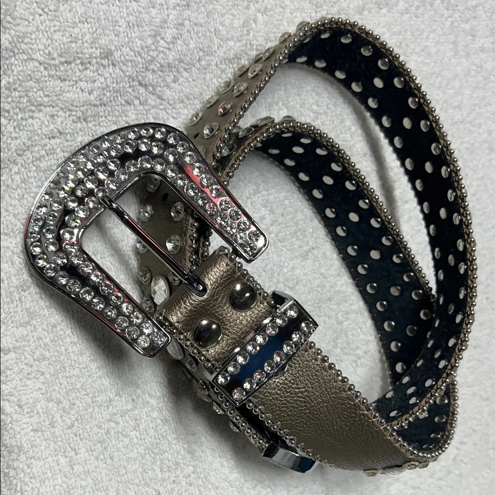 Stylish belt with rhinestone embellishments. Features a studded design.