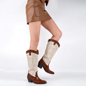 Versatile wide calf cowboy boots for any occasion, pair effortlessly with dresses, jeans, or festival outfits, versatile addition to any wardrobe.