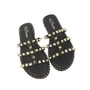 Studded Sandals Slide Black Gold Women Size 6.5 Casual Summer Shoe Punk Grunge
