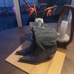 Studded Snakeskin & Suede Mid-Calf Boots