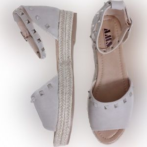 Studded Spike Espadrille Platform Sandals LIGHT GRAY