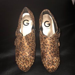 Never worn cheetah print with gold studs booties. Zips on sides. Heel measures about 3 inches. Perfect condition!
