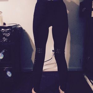 Cool leggings with cross design on sides of legs made of silvertone studs. All studs in place. Says size medium but fits more like a small