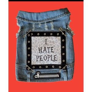 I Hate People back patch with eyelet stud detail & big safety pin detail