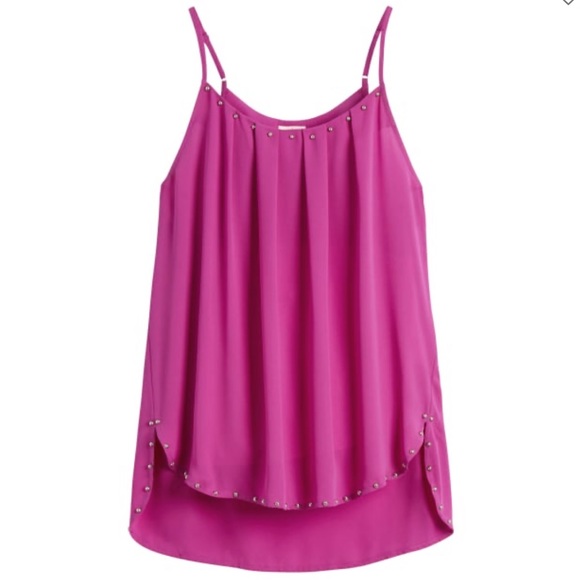 Zamia stud detail blouse. Adjustable high/low tank with studded detail. Purple with adjustable straps.